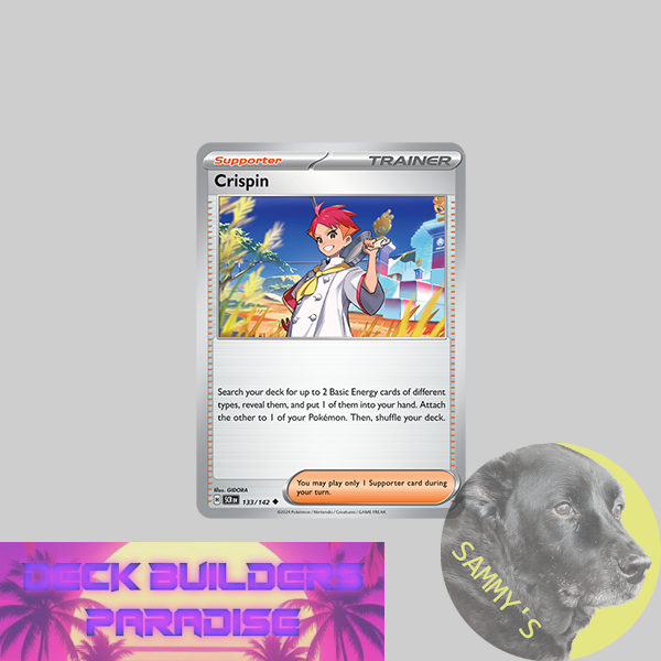 Search your deck for up to 2 Basic Energy cards of different types, reveal them, and put 1 of them into your hand. Attach the other to 1 of your Pokémon. Then, shuffle your deck.